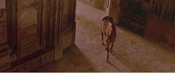 In the exquisite civilization of the library, with its books, ornaments, fireside, and comfortable chairs, where most aspects of human animality are erased, we encounter a herd of deer crashing through the door.