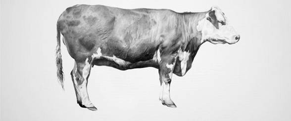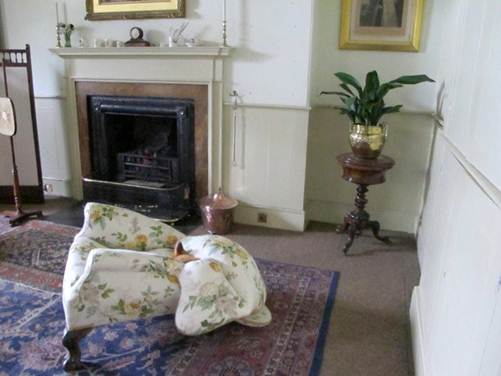 Upstairs there are more surprises: clever inversions and transgressions of the usual order of things. Amongst the portraits of prized animals, instead of a portrait of a prized bull or valued racehorse hanging over the mantelpiece, we find the portrait of the mundane, a dairy cow, “Buttercup.”