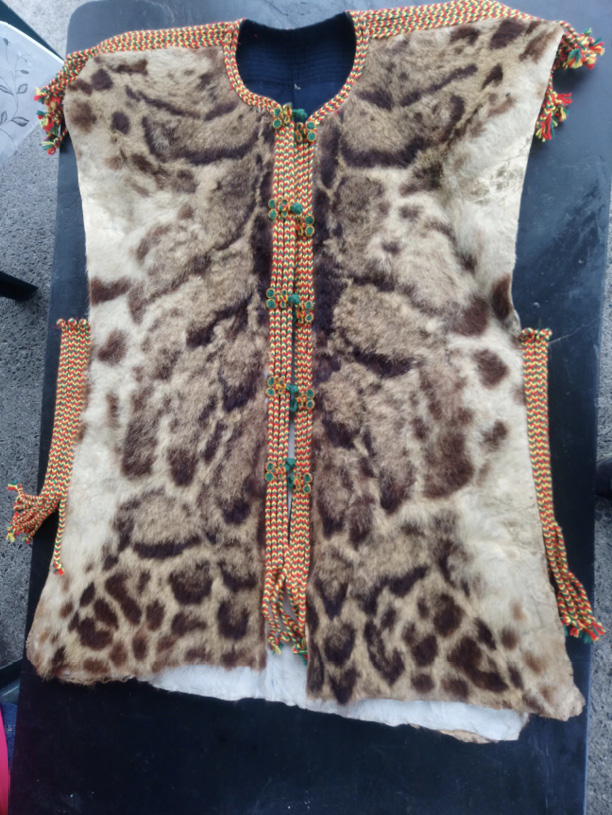 Figure 4: A set of two vests made from imported leopard skins. Wenle village, Pingtung county, March 2019.