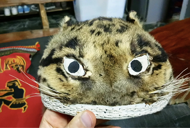 Figure 3: A hat made from leopard skin, imported from China. Jiaxing village, Pingtung county, April 2019. Photograph by the author.