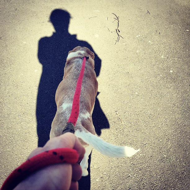 We are part of the same shadow in the stone, appended in motion and space by more than the leash that allegedly holds us together. We are dog-human.
