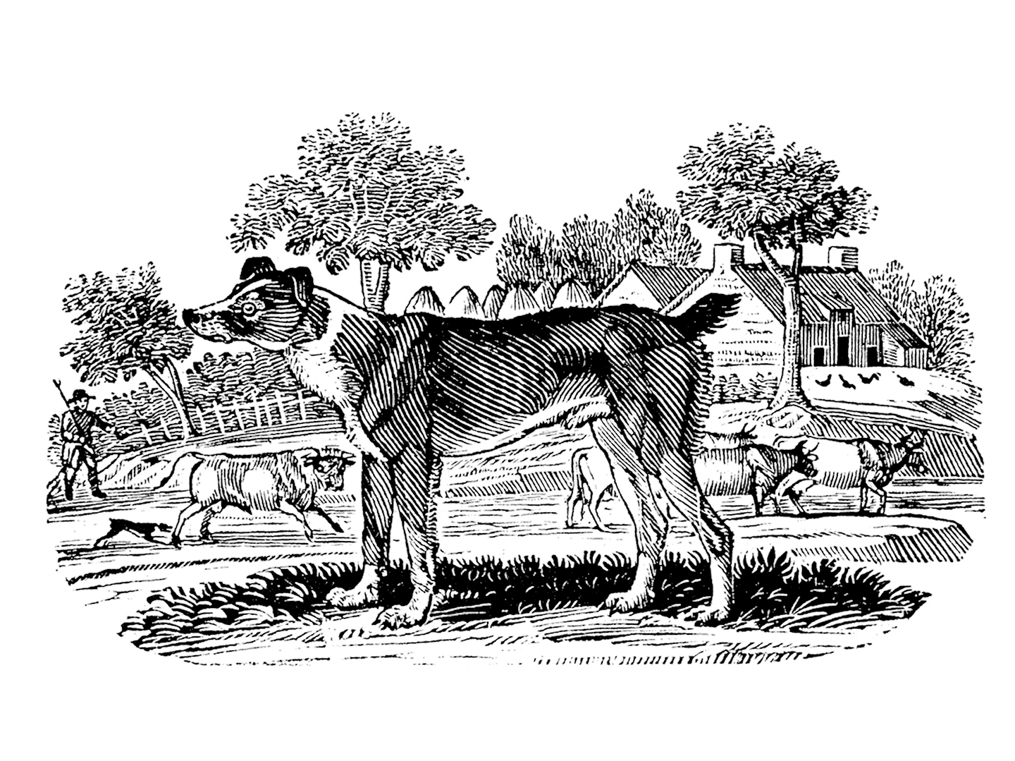 The dividing line between the two types was anything but sharp, and some illustrations are confusing rather than illuminating. Controlled mating in working dogs must have been difficult to achieve, particularly in the case of drover dogs, who travelled through villages and towns, where it was part of their job to protect their charges against the local dogs.10 Thus, there will have been many dogs of mixed ancestry — some authors considered the drover to be a composite type (“cur”) anyway. Furthermore, on small holdings, versatile dogs would have been preferred over specialized ones. Several authors indeed noted that many dogs were expected to perform multiple tasks besides herding livestock, such as guarding the yard, vermin control, and small game hunting (or poaching).