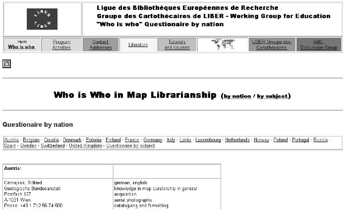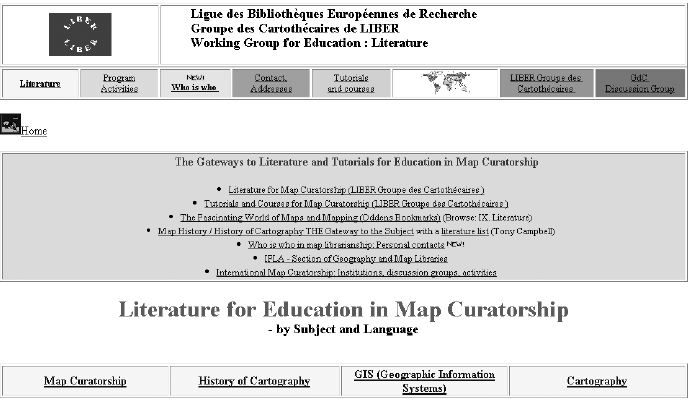 The Web site was composed for the „Groupe des Cartothécaires de LIBER“ containing extensive multilingual bibliographies in map librarianship, map history and GIS/cartography, and important gateways for map curatorship.