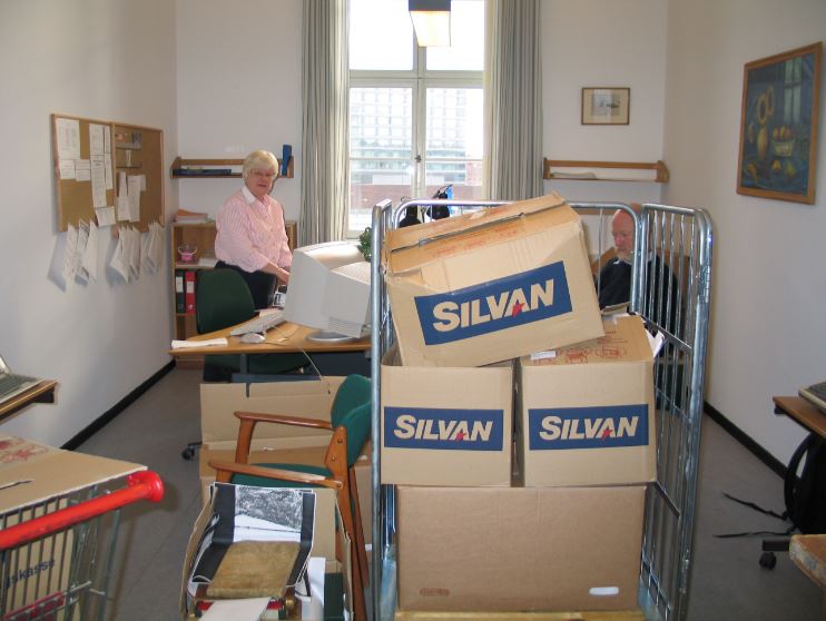 Two photocopies were taken of the title page and the number of each book was written on these copies. One of these was placed in the book, the other was taken to the Royal Library, where two librarians checked shelf mark, author, title and imprint in the database of missing books and marked each entry for the books that had been found with a special code. These two colleagues were only informed that the old case had been solved but they were not told the identity of the criminals. As for the books, they were packed successively in boxes and transferred to one of the strong rooms in the Royal Library day for day, as there was not sufficient capacity in the storerooms for stolen property in the police headquarters. This did not mean that the books were now considered to be the property of the Royal Library but in a way the Royal Library was acting on behalf of the police and the court.