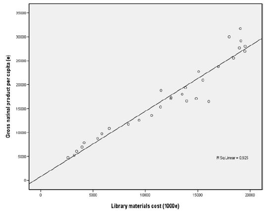 The question of course is how libraries influence our national economy. In order to answer that question we compared the growth of the gross national product (GNP) of Finland to library materials expenditure during thirty years (1977–2006). We also made a statistical regression analysis to find out if there is any real relationship between these numbers.