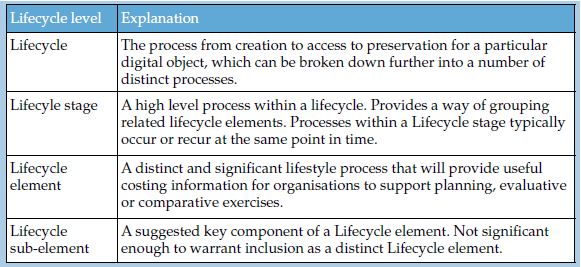 The LIFE Model broke down a digital object’s lifecycle into six main lifecycle stages, identifying the costs of these elements over a specific time period, and thus providing a complete lifecycle cost.