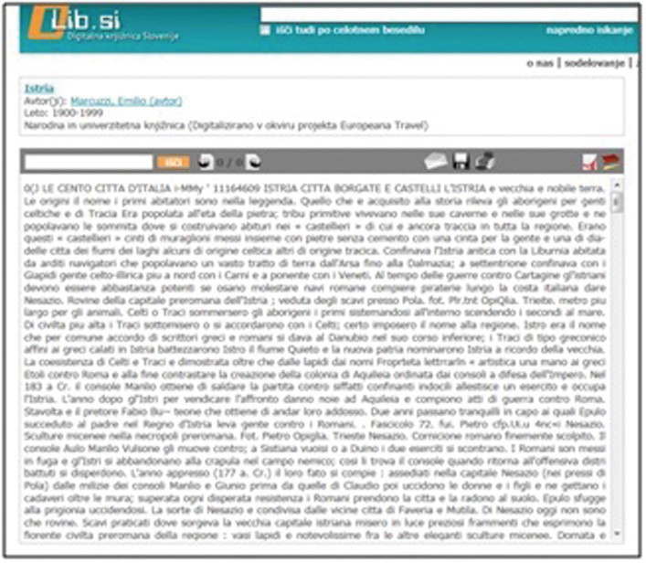 Users of the dLib.si normally use web search engines and full-text search options to look for specific historical texts they need for their studies or other purposes. They have difficulties finding the desired materials when errors affect the OCR results, because the full text search is disabled. Statistics for dLib.si content access in the first four months of 2011 have shown that the HTML preview and PDF files are equally used (both scoring 49%),[15] although the HTML version is much harder to follow (see Figures 3 and 4), as the preview opens in an internet window with no page segmentation. Although headings, paragraphs, page numbers etc. are difficult to recognize, the text can be copied, modified and reused further on. PDF files, on the other hand, can be downloaded and saved on a local computer. The PDF gives the viewer an exact duplicate of the scanned document.