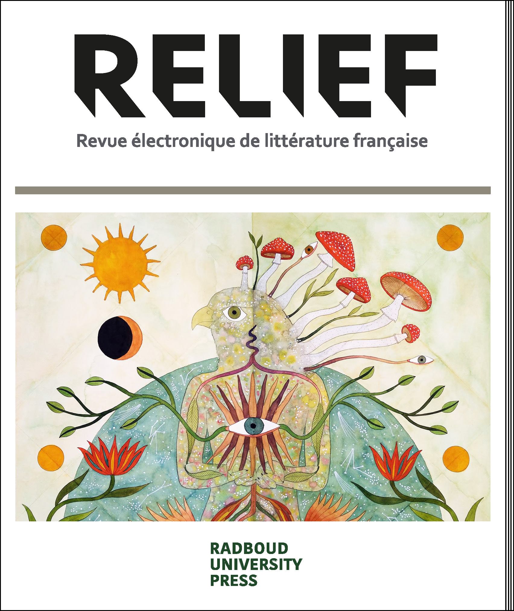 Dans ce dossier thématique de Relief, une dizaine de chercheurs présentent des études de cas qui démontrent et analysent la dynamique des rapports entre auteurs, acteurs, institutions et lecteurs. Tout en reconnaissant l’importance des médiateurs traditionnels et des lieux de sociabilité et d’échange plus ou moins institutionnalisés, ce numéro explore également les nouvelles formes et discours de médiation littéraire qui sont en train d’émerger en ligne, notamment en ce temps de confinement et de distanciation sociale. Pour clore ce dossier thématique, nous proposons deux interviews consacrés aux coulisses de deux instances de médiation littéraire au sein du champ littéraire de la Belgique francophone.